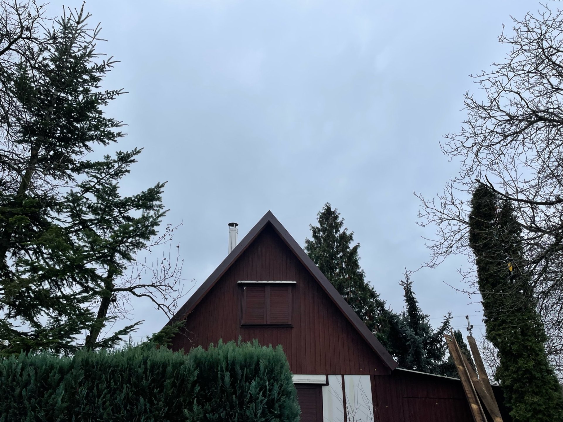 Ze střechy chaty byly zdemontovány staré vlnité eternitové šablony. Střecha byla osazena plechovými šablonami imitace tašky v hnědé barvě.