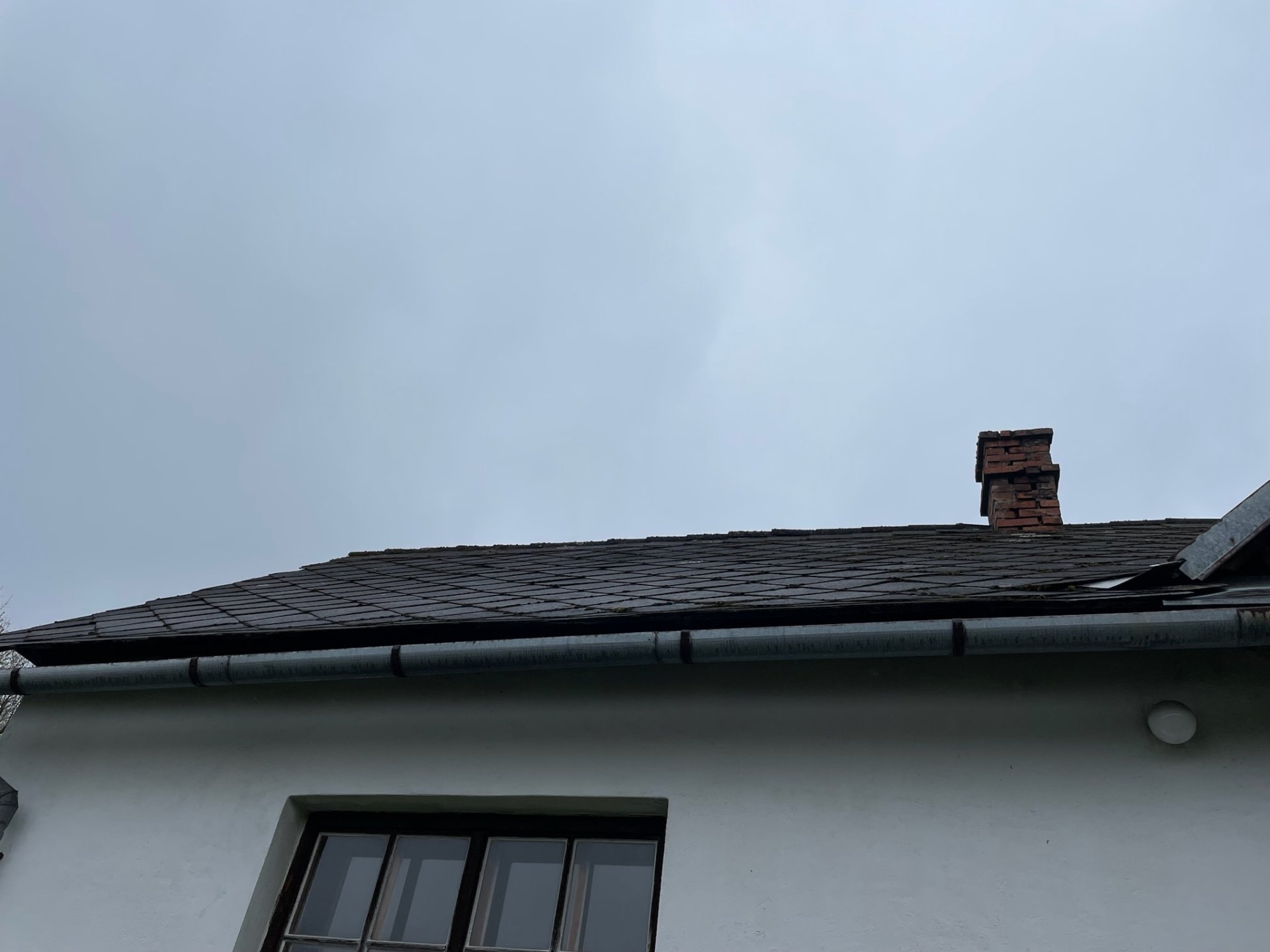 Rekonstrukce střechy na chatě začala demontáží a ekologickou likvidací eternitových šablon. Pojistná hydroizolační folie byla použita od výrobce Dorken Delta XX Plus Universal, následně byla vytvořena větraná mezera pomocí druhého prkenného záklopu včetně podlepení kontralatí pro utěsnění hřebíků. Střecha byla osazena hliníkovými šablonami 29x29 cm s povrchovou úpravou Stucco v barvě antracit od výrobce Prefa. Okapový systém a veškeré doplňky byly použity systémové od stejného výrobce.